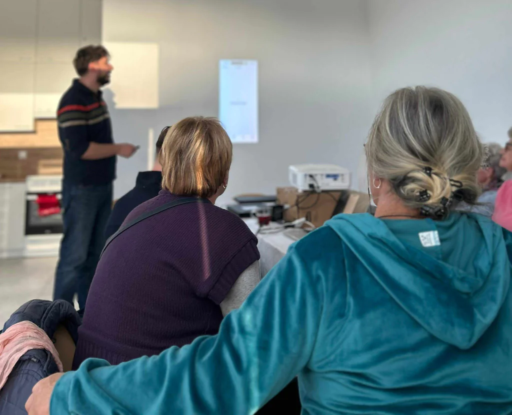 Podczas spotkań z seniorami skupiliśmy się na praktycznej nauce obsługi smartfona oraz korzystania z najważniejszych aplikacji, które mogą ułatwić codzienne życie. Uczestnicy poznali m.in. podstawy korzystania z komunikatorów (takich jak WhatsApp czy Messenger), aplikacji do umawiania wizyt lekarskich, robienia zakupów online, obsługi e-recept czy korzystania z bankowości internetowej.